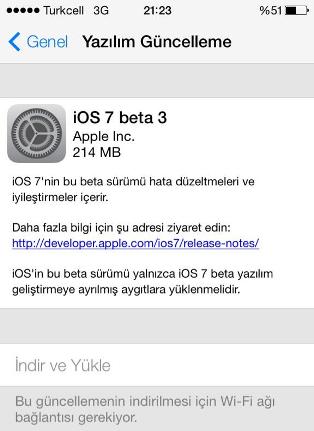 Özellikle Beta 2 versiyonununda ki hatalarla çok gündeme gelen iOS 7, yeni yayınladığı sürümünde bunları iyileştirdiği düşünülüyor. 214 MB büyüklüğündeki Beta 3, Beta 2’de olduğu gibi yayınlanılması düşünülen tarihte yayınlanmış oldu.